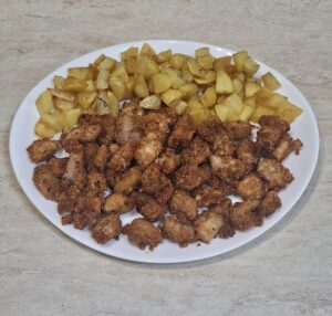 Friggete il pollo nell’olio, finché sarà ben croccante.